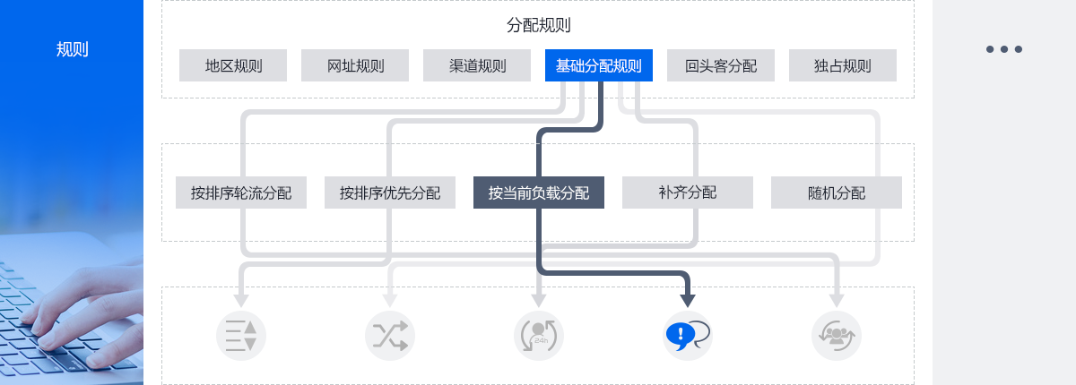 定制不同的分配规则,即按地区 分配对话、按网址分配对话