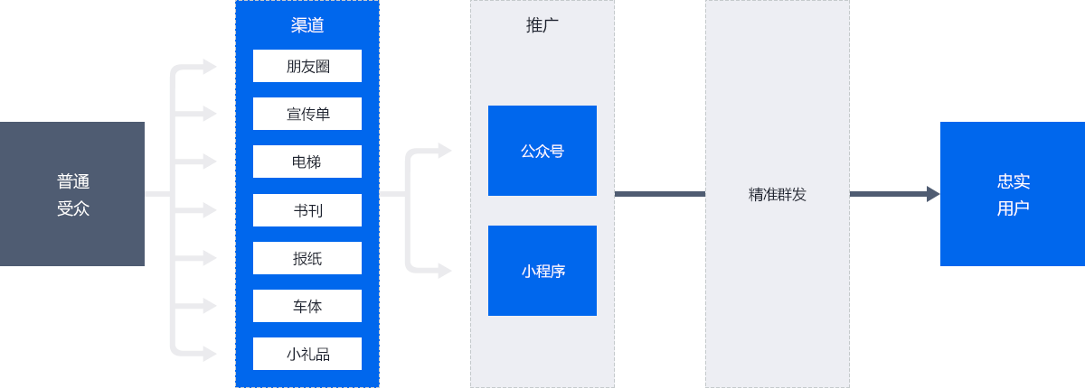 粉丝通过渠道二维码关注后可以自动打标签分组,自动归属到该渠道名的分组下,进行粉丝画像。