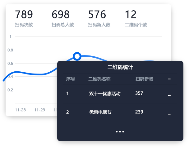 通过不同参数二维码,统计出不同渠道活动所产生的关注量,进而分析各个渠道活动所带来的广告收益,让营销更有依据。